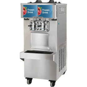 Dual controls allow the operator to serve different products from either side of the machine, varying the menu with options like shakes, smoothies, frozen coffee drinks, margaritas, or other frozen cocktails.