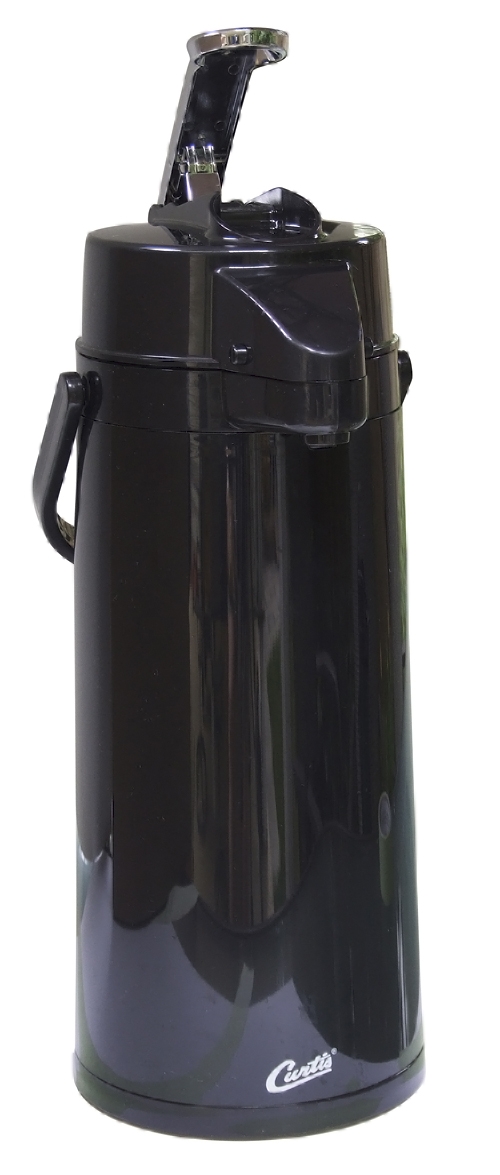 Keep your coffee hot, fresh and flavorful with this 2.2 L ThermoPro Airpot (TLXA2203G000) from Curtis. The vacuum sealed container keeps fresh brewed coffee tasting fresh brewed so that every cup, down to the last drop is just as good as the last. The stylish black plastic looks good in any setting and the glass liner holds heat exceptionally well for long lasting freshness. Café's, restaurants and caterers can quickly set up self-serve stations with this airpot without having to worry about the coffee getting cold or stale and the highly portable design features a large carrying handle with a swivel base and a lockable lever pump that reduces the chance of accidentally dispensing during transport or display.