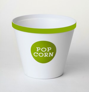 These lime green color rimmed buckets that are big enough to hold 6 quarts of popcorn! There is an insert in the bottom of the bucket keeping the unpopped kernels separate - from the delicious popcorn you are about to enjoy. You will be serving popcorn - just like at the movies. Large plastic bucket is 9" across the top of bucket and 8" tall.