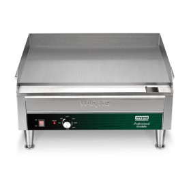 Serve up breakfast and short-order items fast and easy with the 240V Waring WGR240X 24" Electric Countertop Griddle. A large 24" x 16" grilling surface offers even heat distribution—perfect for larger items such as quesadillas, omelets and pancakes. Protect yourself from grease and spills with extra-tall splash guards and an oversized, fully removable grease tray.